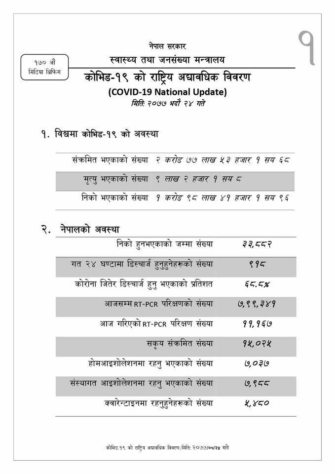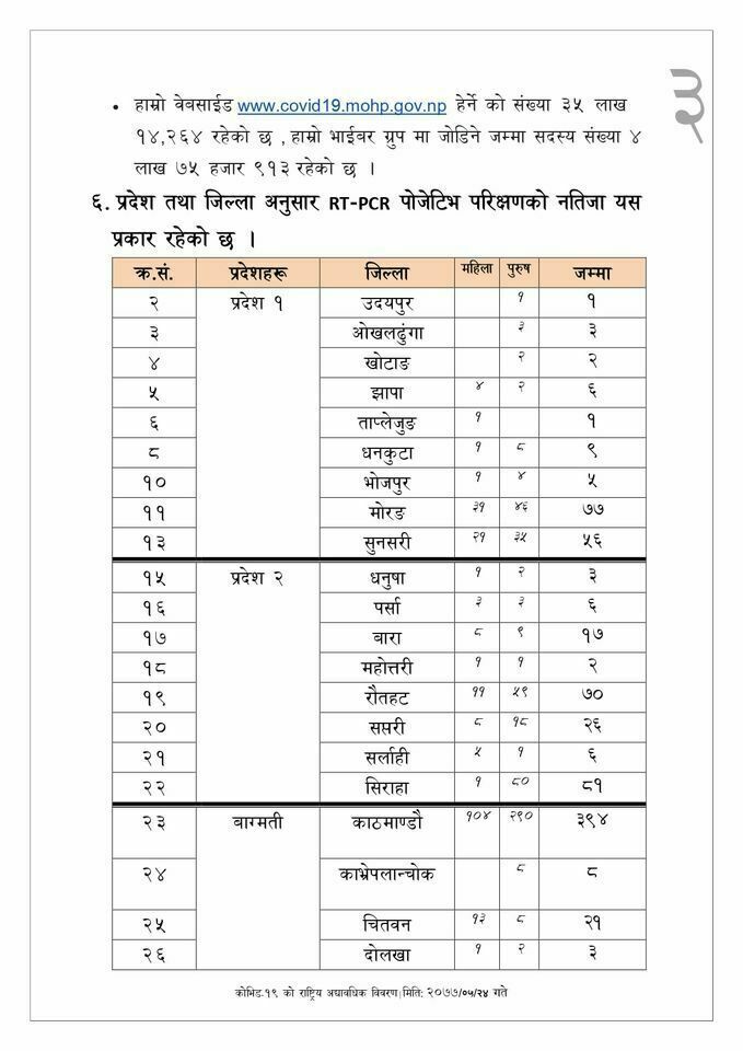 बितेको २४ घण्टामा कुन जिल्लामा थपिए कति जना मन्त्रालयको विवरण हेर्नुहोस् :