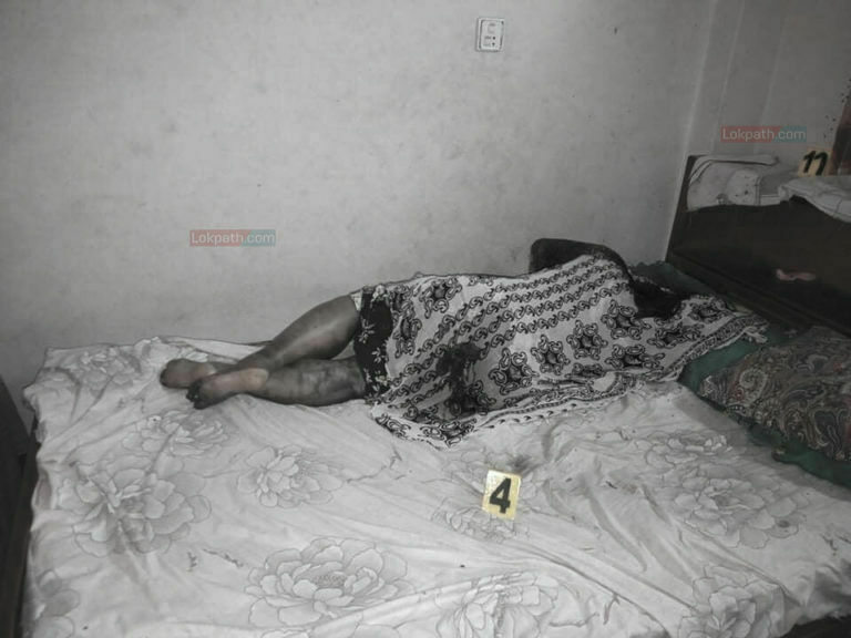 मृत अवस्थामा भेटिएकी महिलाको शव खाटमा लमतन्न अवस्थामा देखिन्छ । उनको शरिरभरि रगत लागेको र पिडौलामा केही खत जस्तो र शरिर गलेको देखिन्छ । रिपोर्टका क्रममा उनीमाथि धारिलो हतियार प्रयोग भएको समेत देखिएको छ । उनको शरीरमा सेतो बुट्टे पिताम्बर ओढाइएको छ । उनको शव फुलेको, छालाबाट पानी बगिरहेको, शरीरको रङ निलो भएको र शव निकै गन्हाउने देखिन्छ । यो शवको हत्या पनि केहि दिन अघिकै हुनुपर्ने प्रहरीको भनाई छ ।