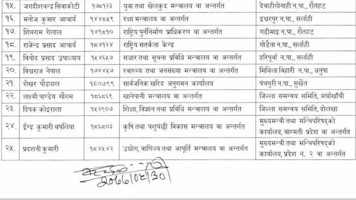 काठमाडौं – सरकारले ३४ जना उपसचिवको सरुवा गरेको छ ।