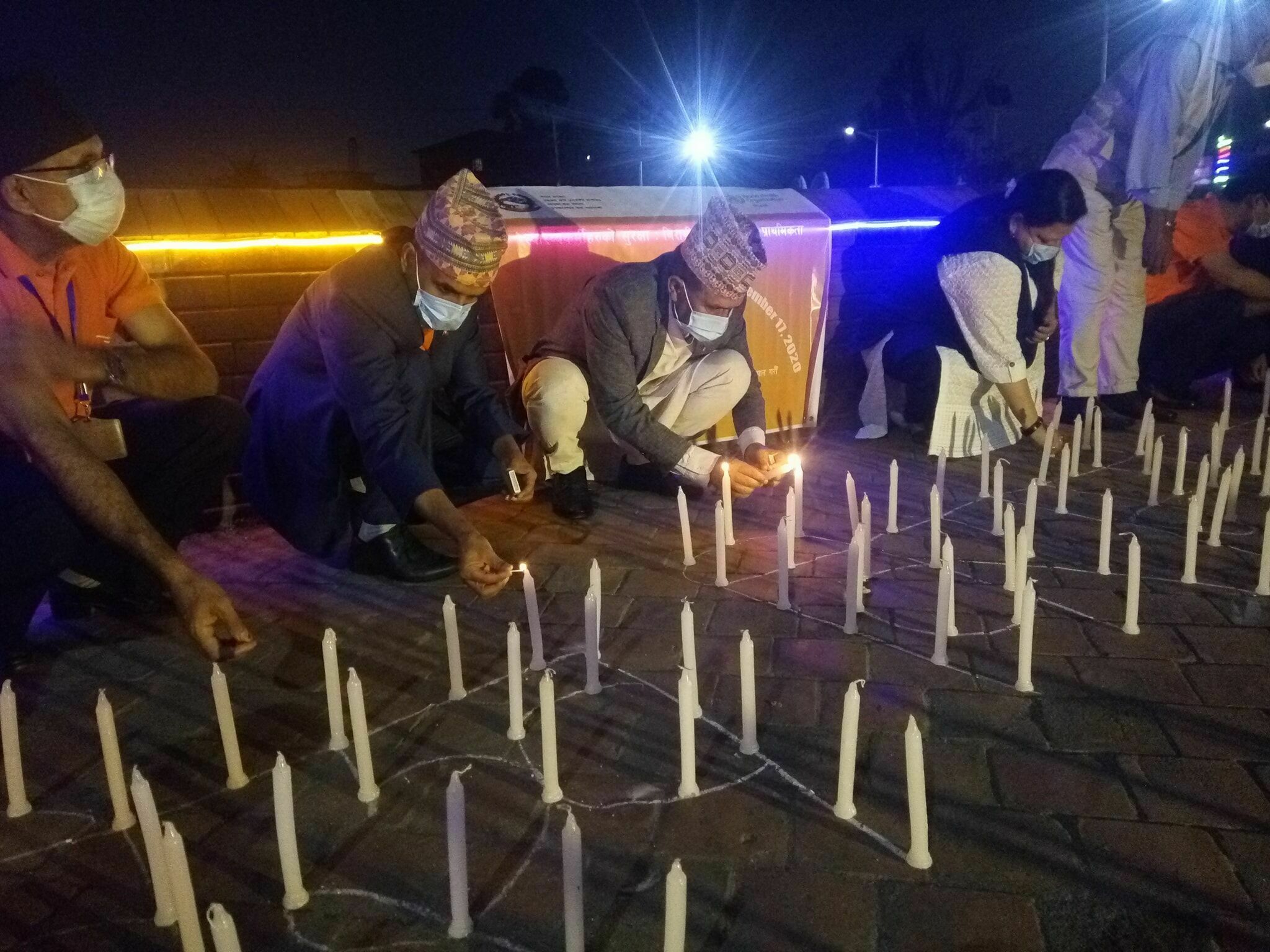 आज साँझ स्वास्थ्यकर्मीको सम्मानमा दीप प्रज्वलनका साथै सङ्क्रमणबाट मृत्यु भएका सम्झनामा माइतीघर मण्डलामा श्रद्धाञ्जली सभाको आयोजना गरिएको हो ।