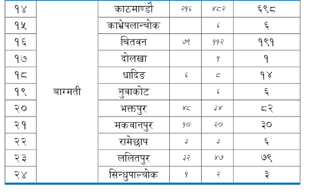 काठमाडौं । बाग्मती प्रदेशमा पछिल्लो २४ घण्टामा थप १ हजार १ सय १६ जनामा कोरोना संक्रमण पुष्टि भएको छ । स्वास्थ्य तथा जनसंख्या मन्त्रालयले दिएको जानकारी अनुसार काठमाडौंमा ६९८, भक्तपुरमा ८२ र ललितपुरमा ७९ सहित प्रदेशभर १११६ जनामा कोरोना संक्रमण पुष्टि भएको स्वास्थ्य तथा जनसंख्या मन्त्रालयले जनाएको छ ।
