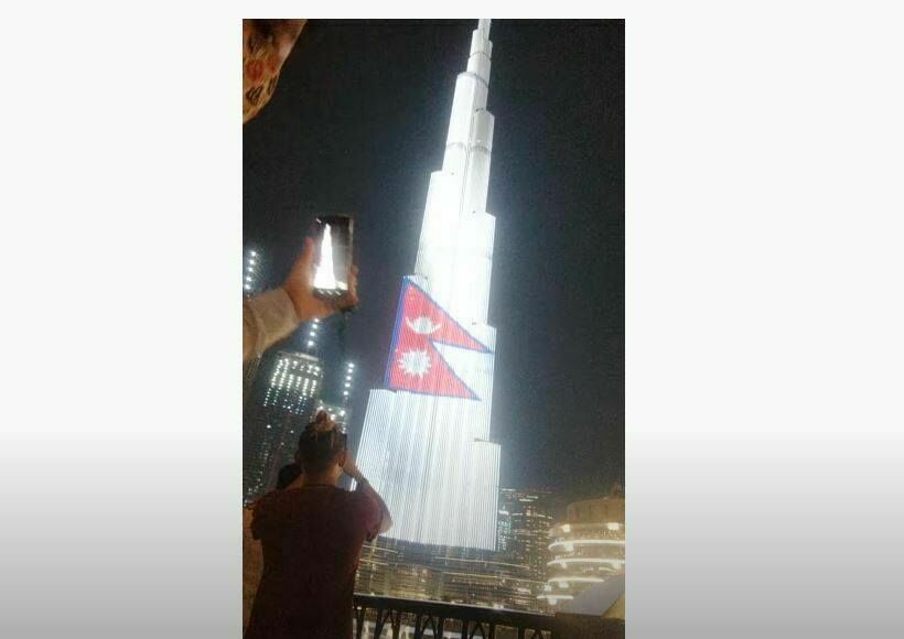 काठमाडौं । नेपालको संविधान दिवसका अवसरमा युनाइटेड अरब इमिरेट्स (युएई)को दुबईस्थित संसारकै सबैभन्दा अग्लो टावर बुर्ज खलिफामा नेपालको राष्ट्रिय झण्डा झलमलाएको छ।