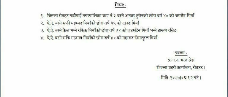 तीनै आलमले उनको योजना बनाइ हत्या गरेको खुल्न आएकाले रौतहट जिल्ला अदालतबाट ज्यान सम्बन्धी कसूरमा ७ दिनको म्याद थप गरी अनुसन्धान भईरहेको डिएसपी श्रेष्ठले बताए । प्रारम्भिक अनुसन्धानमा अभियुक्तहरुले अपराध स्वीकार गरिसकेका छन् ।