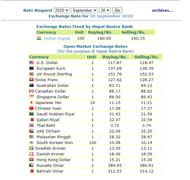 राष्ट्र बैंकले आजका लागि बहराइन दिनार १ को खरिददर ३१२ रुपैयाँ ५३ पैसा र बिक्रीदर ३१४ रुपैयाँ १२ पैसा तोकेको छ ।