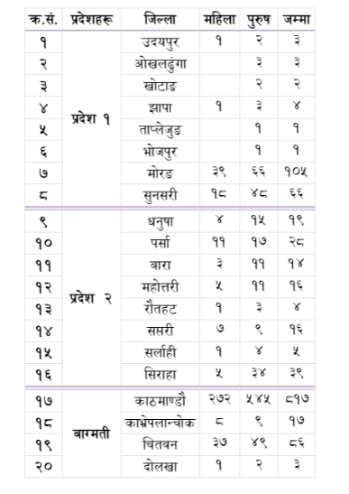 कुन जिल्लामा कति थपिए मृतक ?