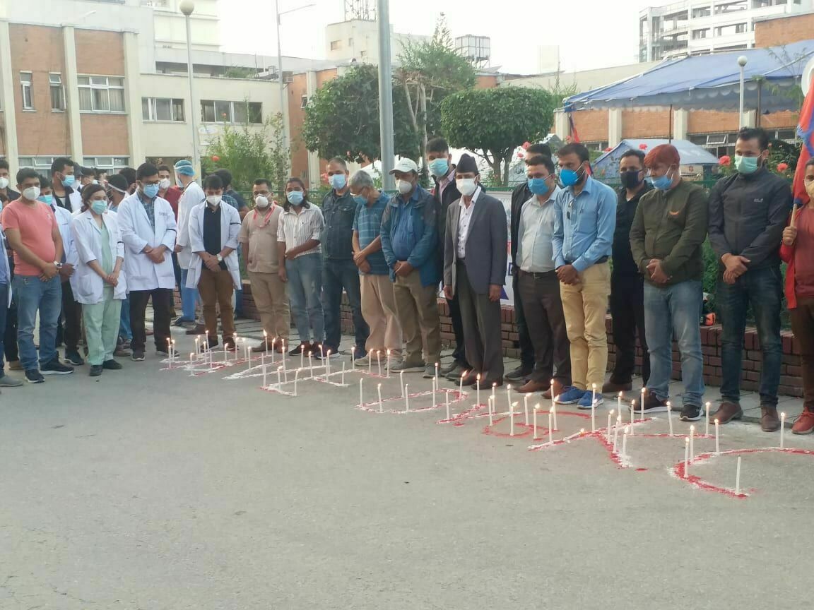 अनसनरत डा गोविन्द केसीको जीवन रक्षाको माग गर्दै त्रिवि शिक्षण अस्पताल महाराजगञ्जमा दीप प्रज्वलन गरिएको छ ।