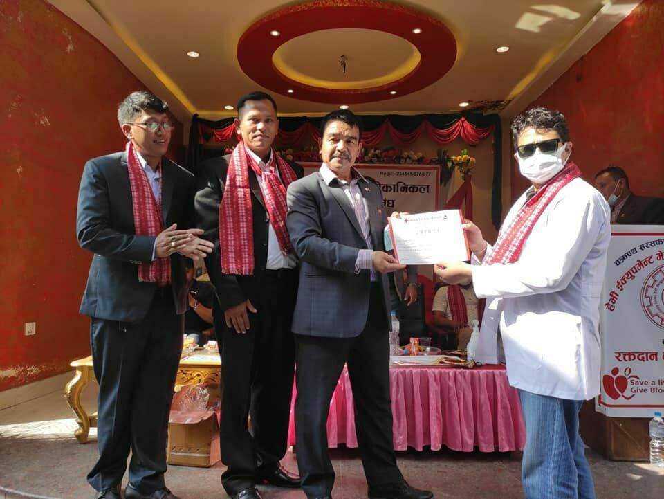‘पाँचौ चरणको रक्तदान जीवनदान अभियान नेपाल हेभी इकुइप्मेन्ट्स मेकानिक्स व्यवसायीसँगको व्यवस्थापन खर्चसहित महत्वपूर्ण सहकार्यमा ७१ जना मेकानिक तथा चक्रपथ अभियानका केही रक्तदाताहरुले रक्तदान गर्नुभयो’, उनले भने ।