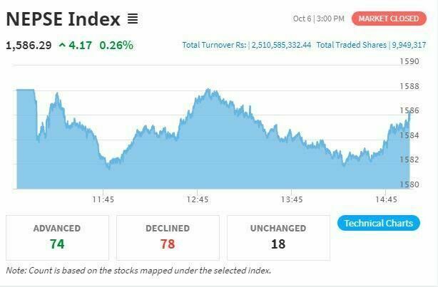 मंगलबार शेयरबजारको कारोबार १५ सय ८६ दशमलव २९ अंकको विन्दुमा बजार बन्द भएको छ ।