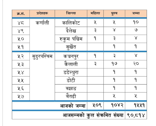 नेपालमा कोरोना अपडेट : १ लाख नजिक पुग्यो संक्रमित संख्या, कुन जिल्लामा कति थपिए ?