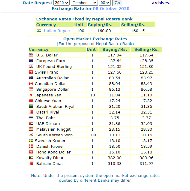 त्यसैगरी बहाराईन दिनार भने १ के खरिददर ३१० रुपैयाँ ३८ पैसा र विक्रिदर ३११ रुपैयाँ ९७ पैसा निर्धारण गरेको छ ।