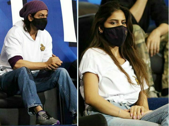 मैच जीतने के बाद शाहरुख खान और सुहाना खान कुछ इस तरह खुश नजर आए।