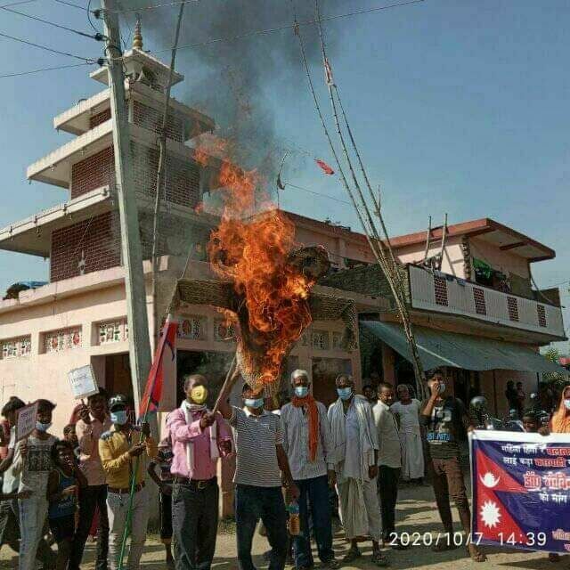काठमाडौं र हुम्ला जिल्लाको लाप्चा गाउँमा भूमि कब्जा गरेको विरोधमा चिनियाँ राष्ट्रपति शी जिनपिङको पुतला दहन गरिएको छ ।