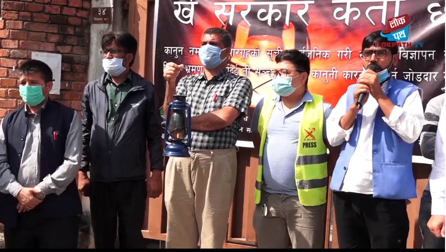 नेपाल पत्रकार महासंघको नेतृत्वमा विभिन्न सञ्चारमाध्यमका पीडित पत्रकाहरुले लालटिन बालेर विभाग अगाडी प्रदर्शन गरेका हुन । पत्रकारको हक हितका लागि सरकारले समेत आफ्नो दायित्व निर्वाह नगरेको नेपाल पत्रकार महासंघका महासचिव रमेश विष्टले बताए ।
