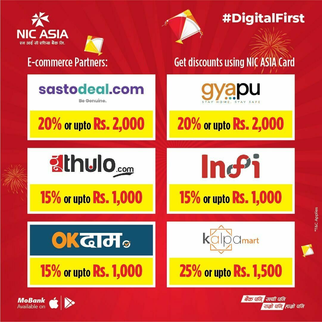 उक्त आकर्षक योजनाअन्तर्गत Sastodeal, Gyapu Marketplace, Thulo Pasal, Infistore, Okdam र Kalmart जस्ता ई–कमर्शबाट बैंकका ग्राहकहरूले डेबिट तथा क्रेडिट कार्ड प्रयोग गरी अनलाइन भुक्तानी गर्दा अधिकतम २५ प्रतिशतसम्म नगद फिर्ता प्राप्त गर्न सकिने बैंकले जनाएको छ ।