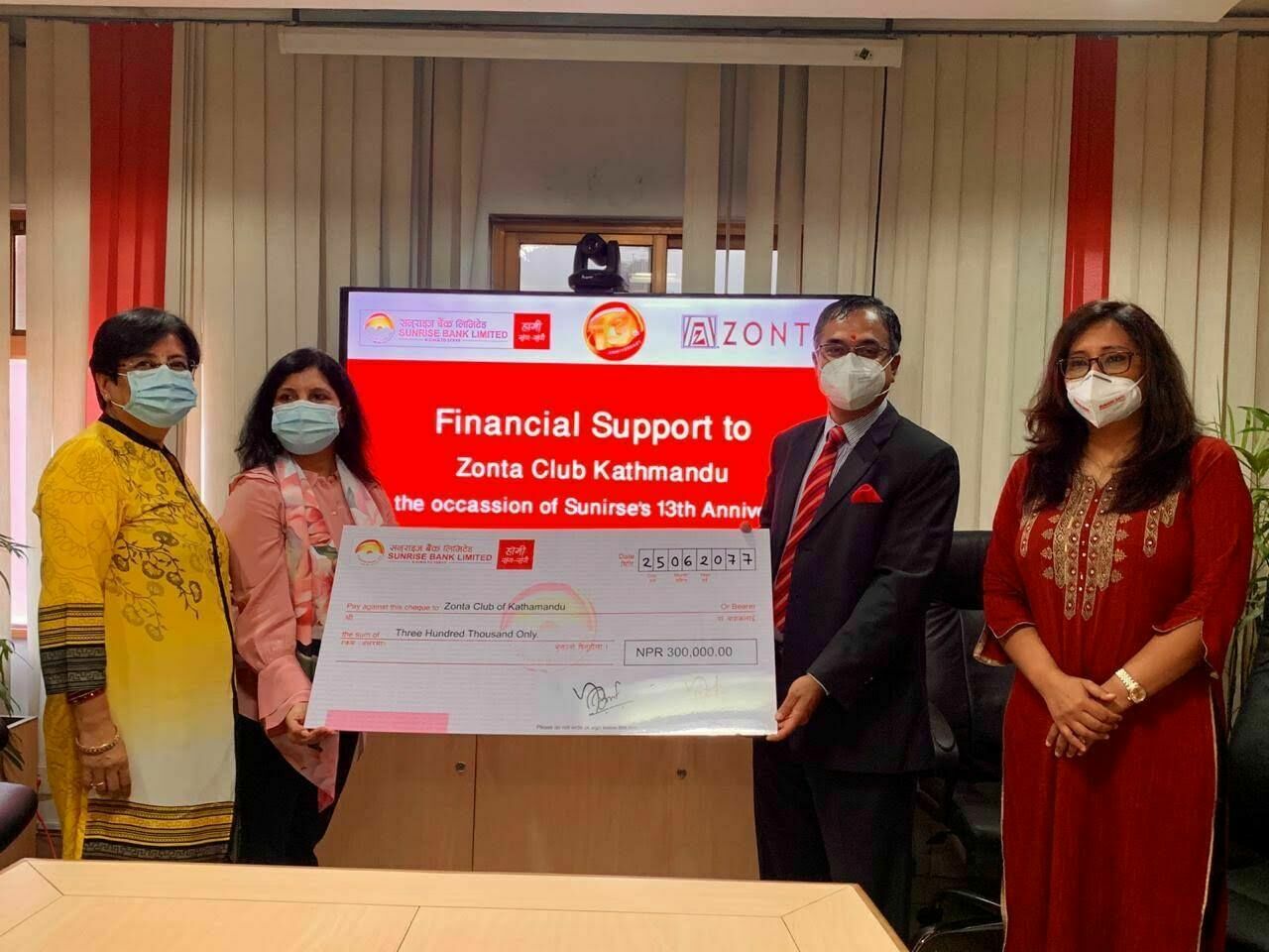 सनराइज बैंक लिमिटेडले आफ्नो १३ औं वार्षिकोत्सवमा जोन्टा क्लब काठमाडौंको यस पहललाई आंशिक रूपमा लगानी गरेर सहयोग पर्याएको छ ।