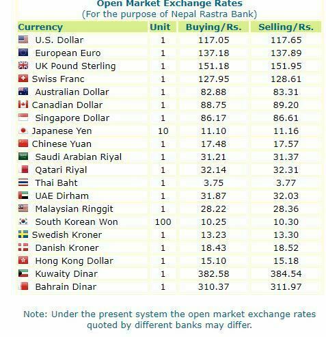 नेपाली मुद्रा बजरको सबैभन्दा महङो मुद्र कुवेती दिनार १ को खरिददर ३८२ रुपैयाँ ५८ पैसा र विक्रिदर ३८४ रुपैयाँ ५४ पैसा निर्धारण गरेको छ भने बहराईन दिनार १ को खरिददर ३१० रुपैयाँ ३७ पैसा र विक्रिदर ३११ रुपैयाँ ९७ पैसा रहेको नेपाल राष्ट्र बैंकले जनाएको छ ।