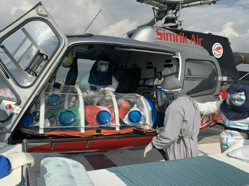 सिम्रिक एयरको ५ वटा हेलिकप्टर रहेकोमा २ वटा हेलिकप्टर पूर्ण रुपले कोरोना बिरामी ओसार पसार गर्न लगाएको छ । गत सोमवार सिम्रिक एअरले बुटवलबाट हम्स हस्पिटलसम्म एक कोरोना संक्रमितसँग उडान भरेको थियो ।