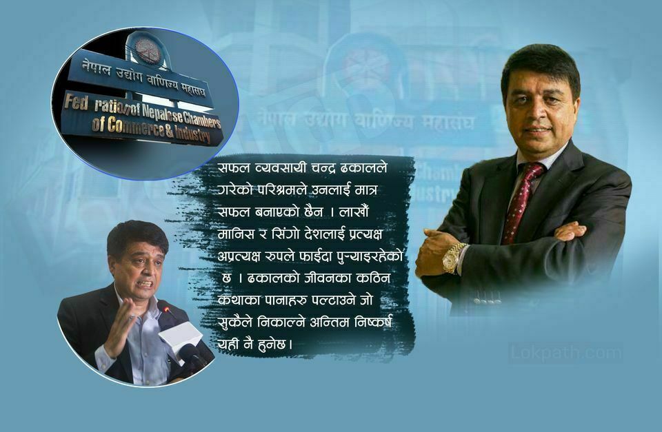 करिब २ दशक आगाडिसम्म मात्र एउटा सामान्य जीवनस्तरमा रहेका चन्द्र ढकाल एकाएक नेपाल उद्योग वाणिज्य महासंघको नेतृत्वको लडाँई लड्दैछन् भन्दा धेरैलाई आश्चर्य लाग्न सक्छ ।