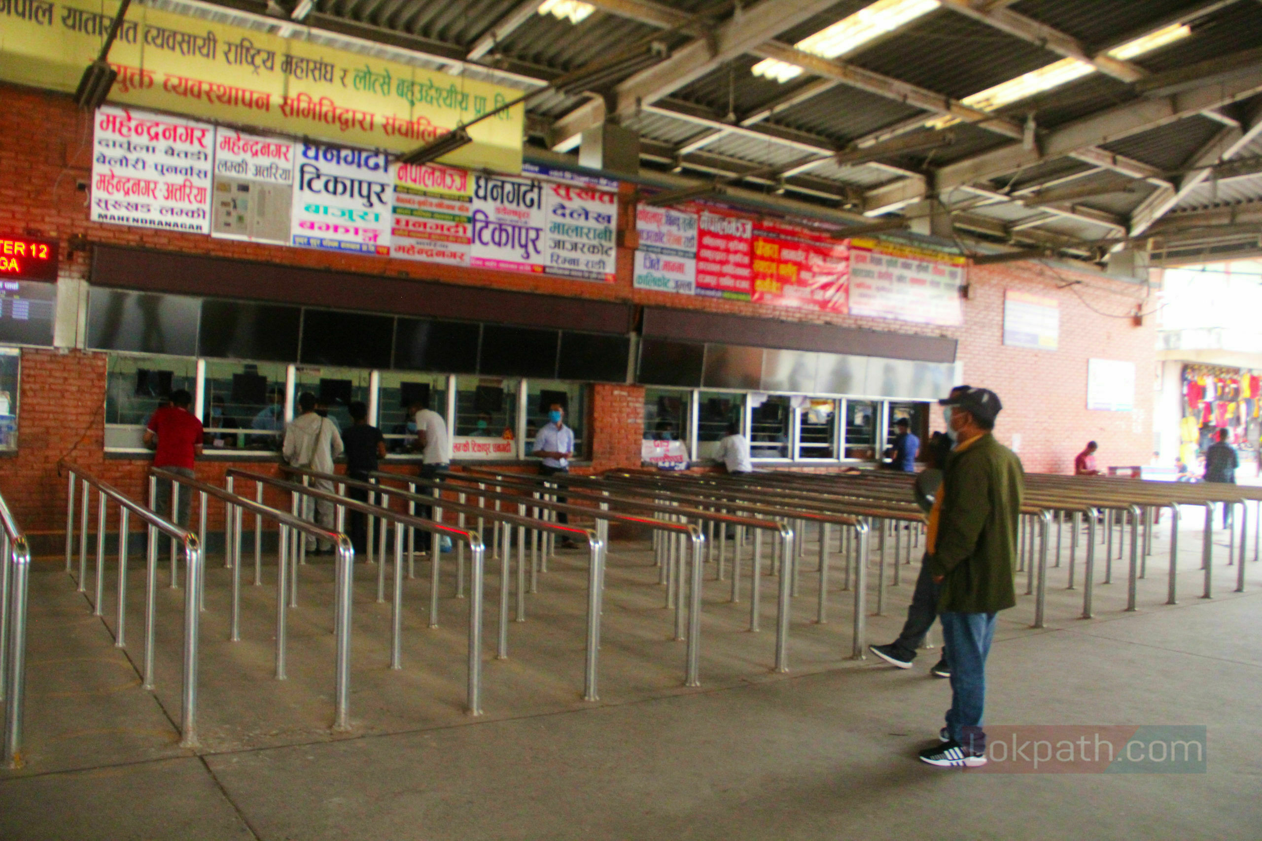 विगतका वर्षमा दशैँको समयमा राष्ट्रिय बसपार्कका रूपमा रहेको गोँगबुस्थित नयाँ बसपार्क, कलङ्की, कोटेश्वर, बल्खुलगायत क्षेत्रमा टिकट नपाएर यात्रुहरु घण्टौँ बस कुरेर गन्तव्यस्थलसम्म पुग्ने गरे पनि यसपटक यात्रु नभएर बसपार्क क्षेत्र सुनसान बनेको छ ।