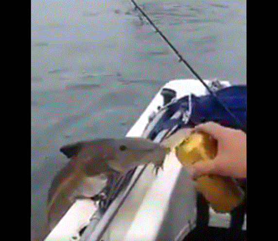 This fish is truly lucky to gulp down some chilled beer from his friend on a hot day.