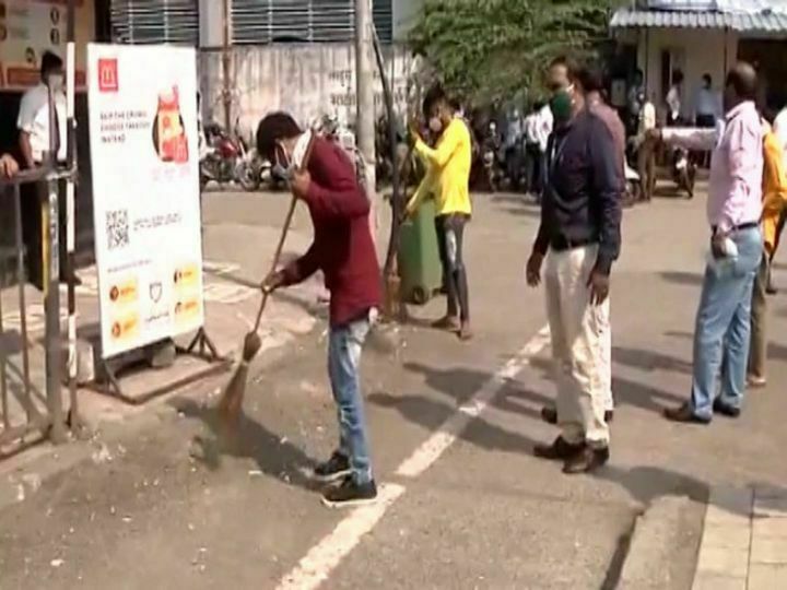 के-वेस्ट वार्ड में BMC ने 30 से ज्यादा लोगों से सड़क पर झाड़ू लगवाई।