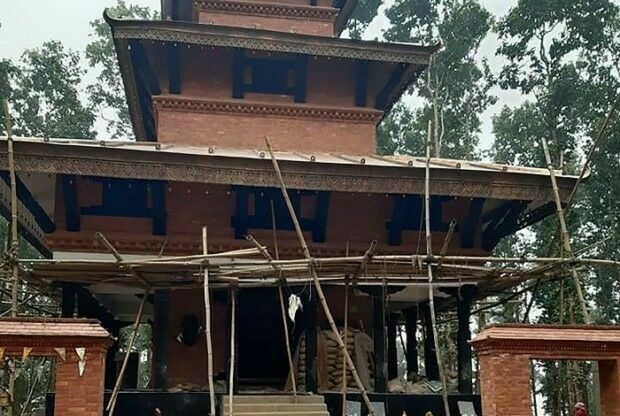 उनका अनुसार मन्दिरको बाहिर घण्टा झुण्ड्याउने पिलरमा ढुङ्गा बिछ्याउन, मन्दिरको साइडमा पर्खाल लगाउन मात्र बाँकी छ । गत फूलपातीकै दिन मन्दिरको उद्घाटन गर्ने गरी कामलाई अगाडि बढाइएको भएता पनि कोभिडका कारण उद्घाटन गर्न नसकिएको रानाले जानकारी दिए। तीनतले र ५५ फिट उचाइको मन्दिरमा विभिन्न नामका देवीदेवताका आकृति भएको ६० वटा टुँडाल हालिएको छ भने मन्दिरमा नौ फिट उचाइको गजुर राखिएको छ । मन्दिर निर्माणका लागि गत आर्थिक वर्षमा संस्कृति, पर्यटन तथा नागरिक उड्डयन मन्त्रालयबाट रु ५० लाख बजेट विनियोजन भएको थियो ।
