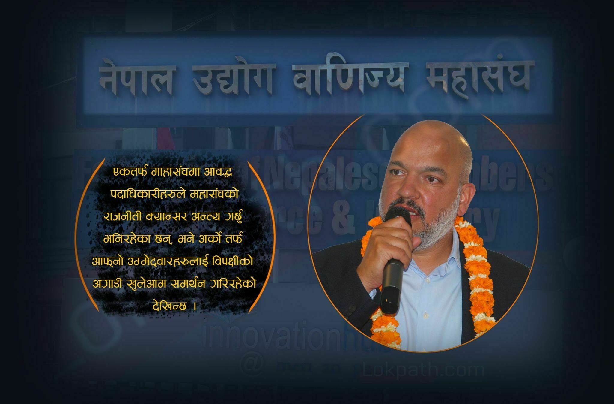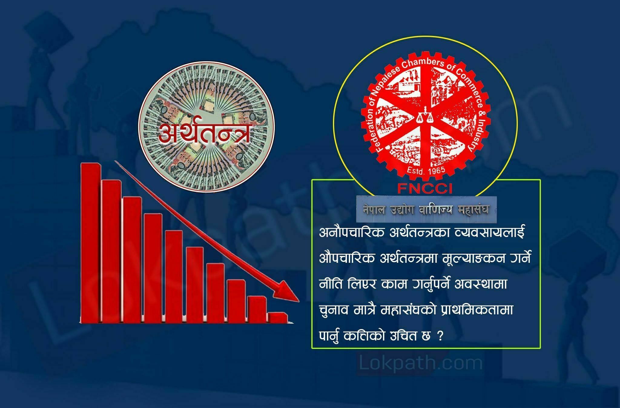 ७० प्रतिशत अनौैपचारिक अर्थतन्त्र रहेको राज्यमा सम्पूर्ण निजी क्षेत्रको प्रतिनिधि संस्था नेपाल उद्योग वाणिज्य महासंघ भने राज्यको खस्कँदो अर्थव्यवस्थातिर कम र आफ्नै राजनीतितिर बढ्दा व्यस्त देखिन्छ ।