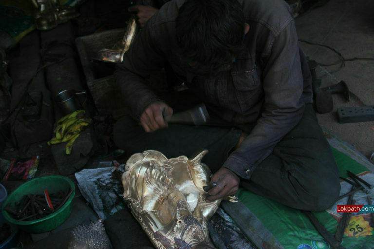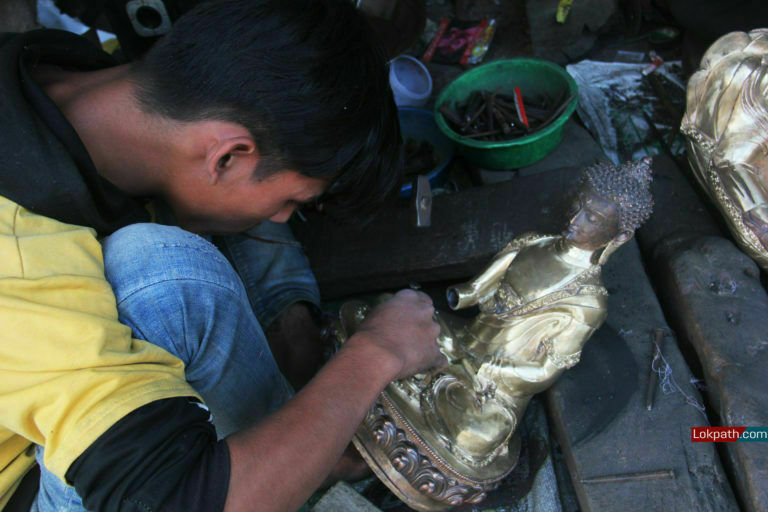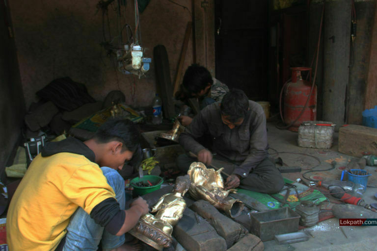 कोही बनिसकेको मूर्तिमा रंग लगाउँदै थिए । उनीहरुका अनुसार साना ठूला, सामान्य, विशेष गरेर प्रत्येक व्यक्तिले महिनामा ५ देखि ६ वटा सम्म मूर्ति बनाउन भ्याउँछन् ।