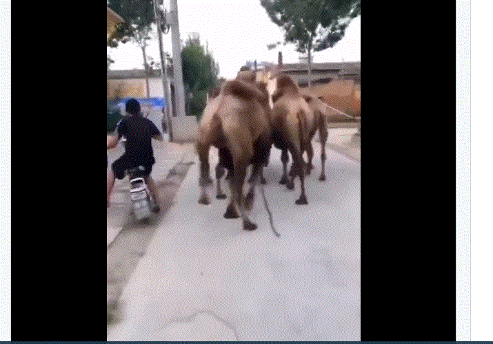 यो भाइरल बनेको भिडियोमा एक मानिस उँट डोर्याएर जाँदै गरेको देखिन्छ । साथै पछाडि एक जना बाइकमा आइरहेको पनि देखिन्छ ।