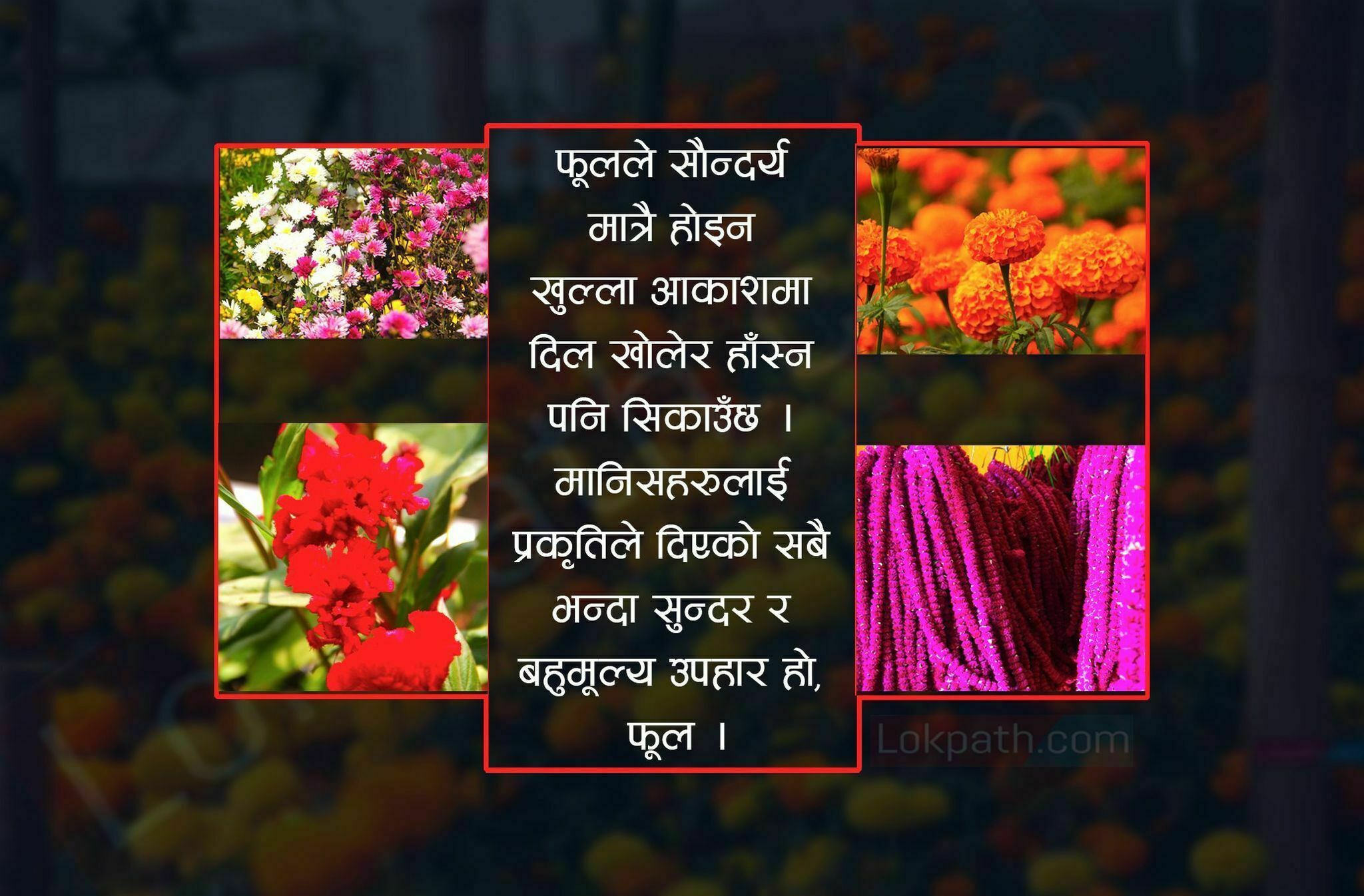 काठमाडौं । फुलेको फूल देखेर जो कोहिको मन आनन्दित हुन्छ । फूलले सौन्दर्य मात्रै होइन खुल्ला आकाशमा दिल खोलेर हाँस्न पनि सिकाउँछ । मानिसहरुलाई प्रकृतिले दिएको सबै भन्दा सुन्दर र बहुमूल्य उपहार हो, फूल ।