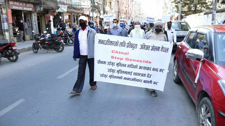 प्रदर्शनमा सहभागिहरुले काठमाडौंको पुरानो बसपार्कबाट पद्मकन्या क्याम्पससम्म विरोध र्याली गरेका थिए । प्रदर्शनमा सहभागिहरुले ‘चीनमा उइगुर मुस्लिममाथिको अत्याचार बन्द गर’, उइगुर मुस्लिमलाई स्वतन्त्रता देउ’, उइगुर मस्लिमको मानवअधिकार बहाली’ गर जस्ता नारा लगाएका थिए । आज नै उनीहरुले नेपालस्थित चिनियाँ दुतावास अगाडी धर्ना समेत दिएका छन् ।