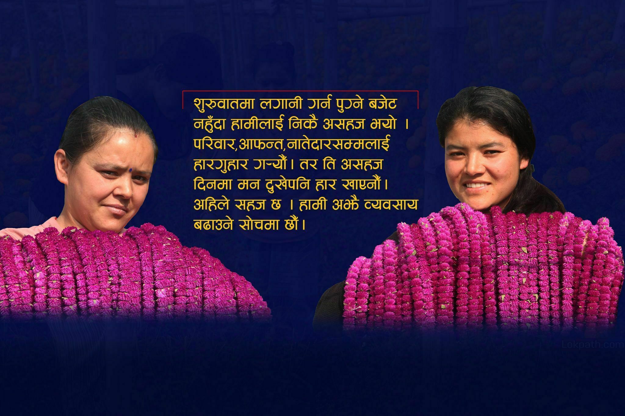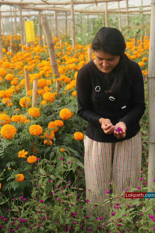 आफ्नो मेहनत बारीभरी फक्रिरहेको देखेर रुपमा निकै खुसी छिन् । उनले थपिन् अफ्रिकन मेरीगोल्ड जातको फूल हामीले सधैँ उत्पादन गर्छौ । यो फूलको माग जहिलेपनि हुने गर्दछ । मखमली त यहि एक सिजनमा हुन्छ । यसपटक हामीले २ हजार बढी माला बनाएर एक साताअघि नै बजारमा पठाईसक्यौँ ।