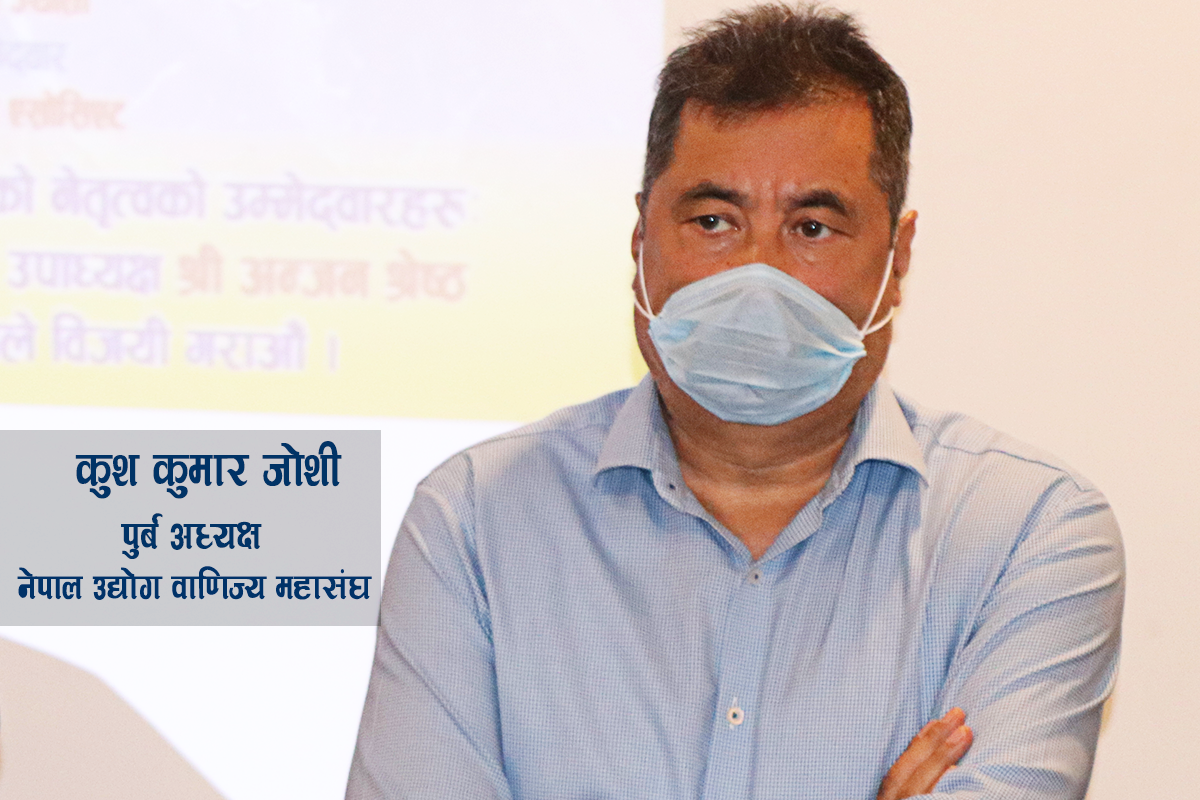 ‘हामी करदाता हौँ, रोजगारदाता हौँ, चैत्र ११ गतेदेखि मूलुक लकडाउन भयो, सबै उद्योग धन्दा, व्यापार व्यवसाय बन्द गर्न सरकारले उर्दी गर्यो, हामीले बन्द पनि गर्यौं’ पूर्व अध्यक्ष जोशीले भने, ‘तर उद्योग व्यवसाय बन्द रहँदा पनि आफ्ना कामदारलाई आफैँ पैसा देउ भनेर सरकारले भन्यो, हामी यो सुनेर मात्रै बस्यौँ, बोल्न सकेनौँ । किनभने हामी अहिले कमजोर बनिसकेका छौं ।’
