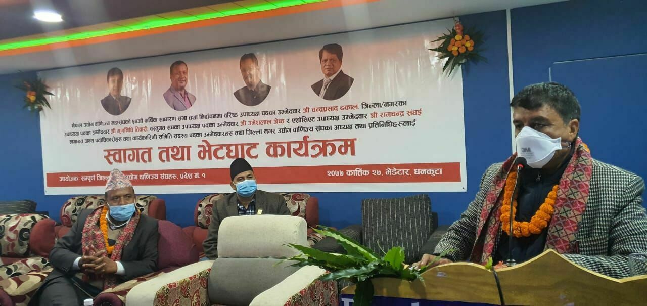 ‘बिहीवार धरानको भेडेटारमा आयोजित कार्यक्रममा एक नम्बर प्रदेशका अधिकांश जिल्ला तथा नगरअध्यक्षहरुले अहिलेको अवस्थामा ढकाल नेतृत्वको टीमले मात्र हामी जिल्ला नगरका उद्योगी व्यवसायीका समस्या समाधान गर्न सक्नेछ भन्दै जिल्ला दौडाहामा रहेको ढकाल प्यानललाई स्वागत तथा जीतको अग्रीम बधाई दिएका थिए ।