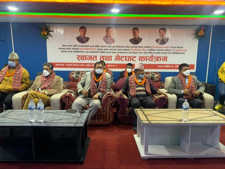 निर्वाचन अभियानअन्तर्गत बिहीवार धरान पुगेका वरिष्ठ उपाध्यक्षका उम्मेद्वार ढकाल र उनको टिमका तर्फबाट जिल्ला नगरतर्फका उपाध्यक्ष गुणनिधी तिवारी तथा केन्द्रीय सदस्य पदका उम्मेदवारहरुलाई स्वागत गर्दै १ नम्बर प्रदेशका १७ भन्दा बढी जिल्ला नगर अध्यक्षहरुले उक्त कुरा बताएका हुन् । सो कार्यक्रममा उपस्थित नभए पनि मोरङ उद्योग संगठनका अध्यक्ष भिमप्रसाद घिमिरेले ढकाल प्यानललाई विराटनगर विमानस्थलमा स्वागत गर्दै आसन्न निर्वाचनका लागि अग्रिम बधाई तथा शुभकामना दिएका थिए ।