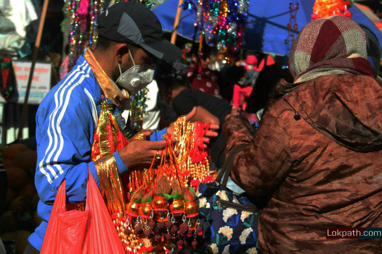 कोरोना भयावहकाबीच पनि मानिसहरु स्वास्थ्य मापदण्ड अपनाउँदै तिहारका सरसामान किन्न बजार निस्किएका छन् ।