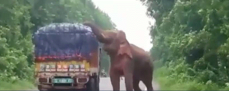 हाइवेमा हात्तीको रजाईं, दिनदहाडै गर्यो लुटपाट (भिडियो)
