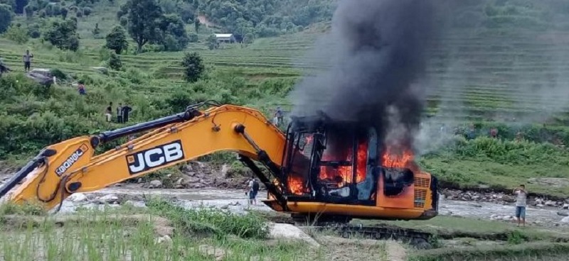 जलजला-आँसु-जय माँ निर्माण सेवाका संचालक तथा महासंघका कार्यसमिति सदस्य बालाजु श्रेष्ठको स्क्याभेटरहरुमा अज्ञात समुहबाट आगजनी गरिएकोमा चार वटा जलेर नष्ट भएको र बाँकी एउटमा आशिंक क्षति पुगेको छ । रा.१ क. ३६७ नम्बरको स्क्याभेटरमा आगजनी गरिँदा करोडौको क्षति भएको महासंघले जनाएको छ । ती स्क्याभेटरहरु कल्याणकोट-कालाकाटे गढवा सिक्टा हुलाकी सडक निर्माणमा प्रयोग हुँदै आएका थिए । उक्त सडक खण्डको निर्माण बज्रगुरु कान्छाराम कन्स्ट्रक्शन जेभीले गरिरहेको थियो ।