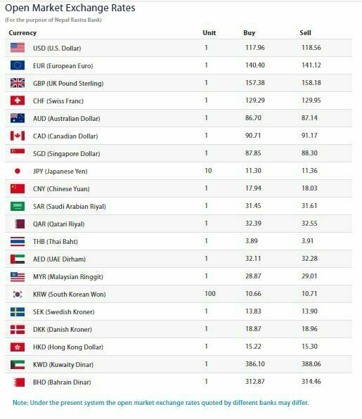 नेपाली मुद्रा बजारको सबैभन्दा महङ्गो मुद्रा कुवेती दिनार १ को खरिददर ३८६ रुपैयाँ १० पैसा र बिक्रीदर ३८८ रुपैयाँ ०६ पैसा निर्धारण गरेको छ भने बहराईन दिनार १ को खरिददर ३१२ रुपैयाँ ८७ पैसा र बिक्रीदर ३१४ रुपैयाँ ४६ पैसा रहेको छ ।