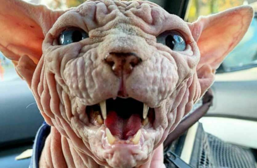 यो बिरालोको शरीरमा एउटा पनि कपाल छैन र यो बिरालो एक प्रकारको रोगबाट ग्रसित छ । त्यसैले उक्त बिरालोको शरीरमा धेरै प्वालहरु ब्नेका छन् ।