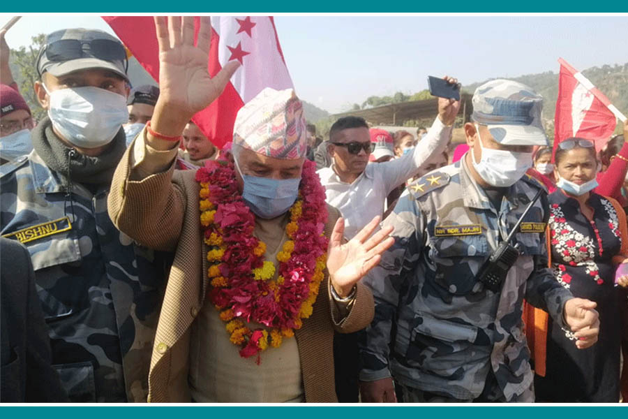 चरिकोटस्थित कांग्रेसको पार्टी कार्यालयबाट निस्केको शंख जुलुस पशुपति मन्दिर हुँदै सातदोबाटो चोकमा पुगेर कोण सभामा परिणत भएको थियो ।