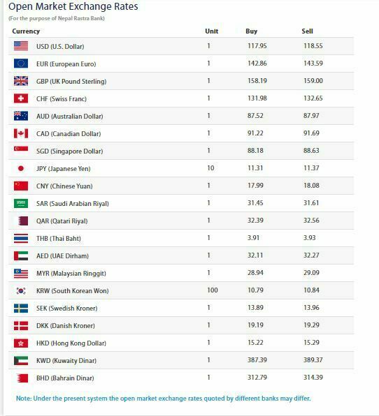 नेपाली मुद्रा बजारको सबैभन्दा महङ्गो मुद्रा कुवेती दिनार १ को खरिददर ३८७ रुपैयाँ ३९ पैसा र बिक्रीदर ३८९ रुपैयाँ ३७ पैसा निर्धारण गरेको छ भने बहराईन दिनार १ को खरिददर ३१२ रुपैयाँ ७९ पैसा र बिक्रीदर ३१४ रुपैयाँ ३९ पैसा रहेको छ ।