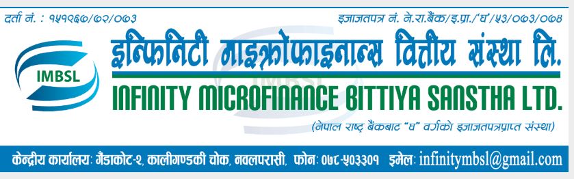 काठमाडौं । इन्फिनिटी लघुवित्त वित्तीय संस्था लिमिटेडले लाभांश घोषणा गरेको छ । कम्पनीको शुक्रबार बसेको संचालक समितिको बैठकले आर्थिक वर्ष ७६/७७ को मुनाफाबाट वितरण गर्ने लाभांश प्रस्ताव गरेको हो ।