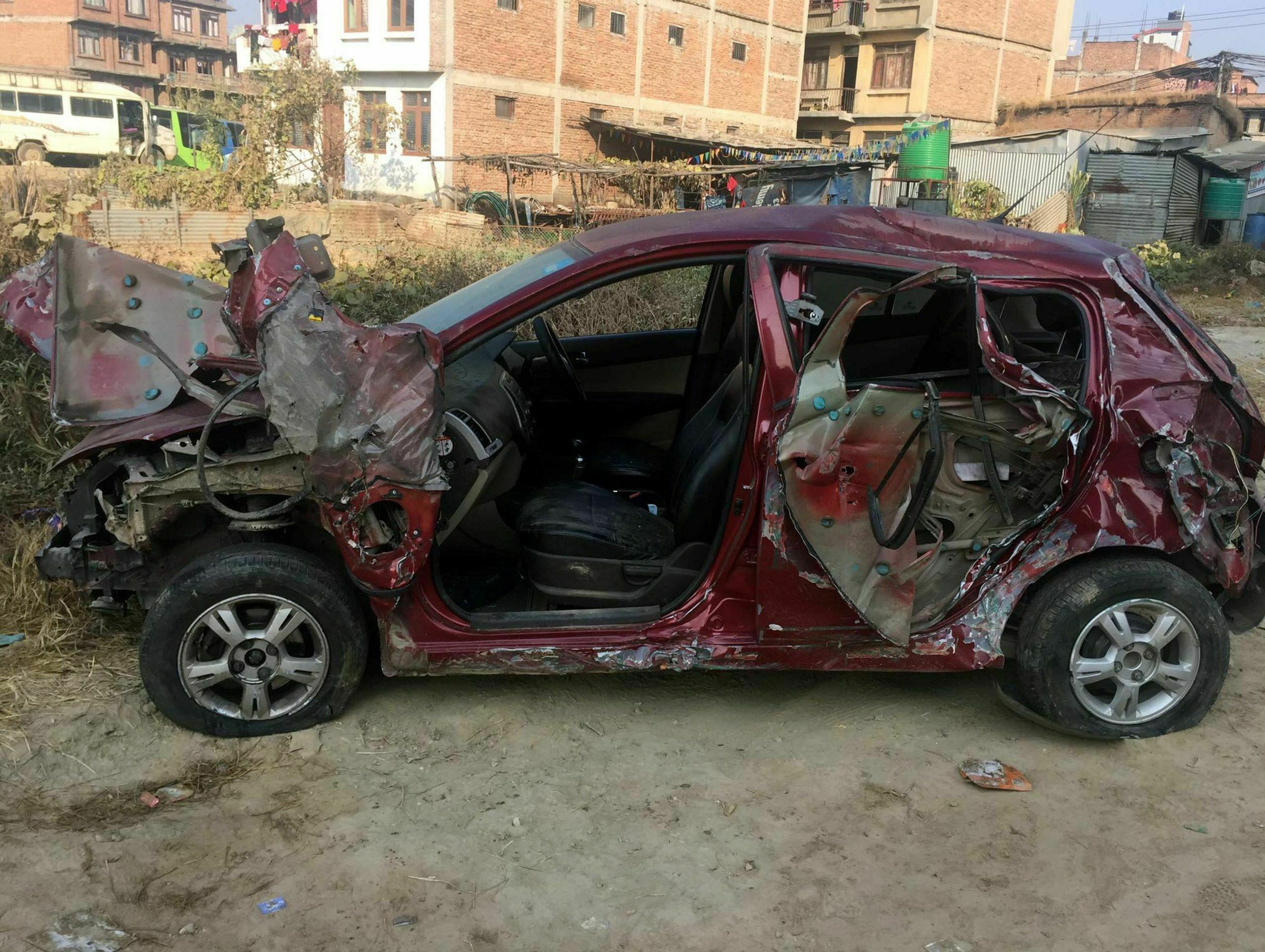 चार जना सवार उक्त कार अनियन्त्रित भई दुर्घटना भएको प्रहरी परिसर भक्तपुरका प्रहरी नायब उपरीक्षक दीपक गिरीले जानकारी दिएका छन् । उनले घटनाबारे जानकारी पाएलगत्तै घटनास्थल पुगेर घाइते श्रेष्ठलाई उपचारका लागि मध्यपुर अस्पताल पुर्याइएको बताए । घाइते श्रेष्ठको अस्पताल पुर्याउँदा चिकित्सकले मृत्यु भइसकेको जनाएका थिए ।