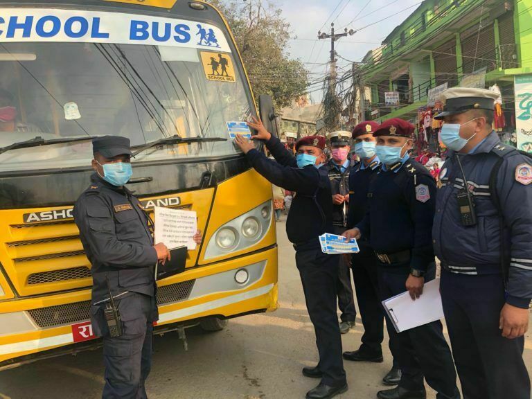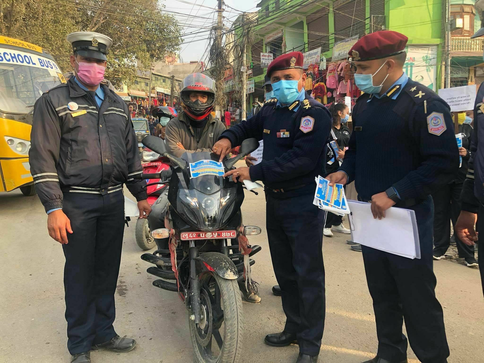 लैंगिक हिंसा विरुद्ध सवारी साधनमा स्टिकर टाँसेर सचेतना जगाउँदै प्रहरी