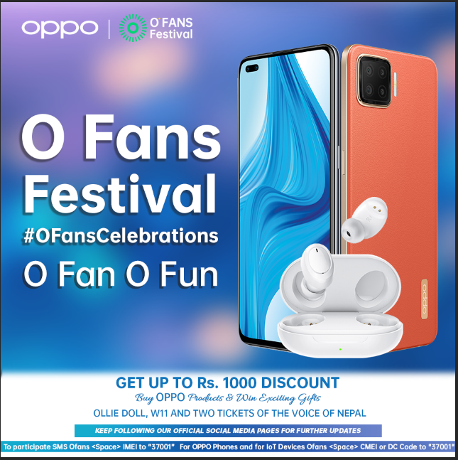 डिसेम्बर १ देखि प्रारम्भ गरिएको सो एसएमएस उपहार योजनामा सहभागिता जनाई उपभोक्ताले ओपोका हरेक उपकरणको खरिदमा आकर्षक उपहारहरु जित्ने अवसर पाउनेछन् । ‘ओ-फ्यान्स फेस्टिवल’ क्याम्पेन जनवरी १०,२०२१ सम्म लागु हुने कम्पनीले जानकारी दिएको छ ।