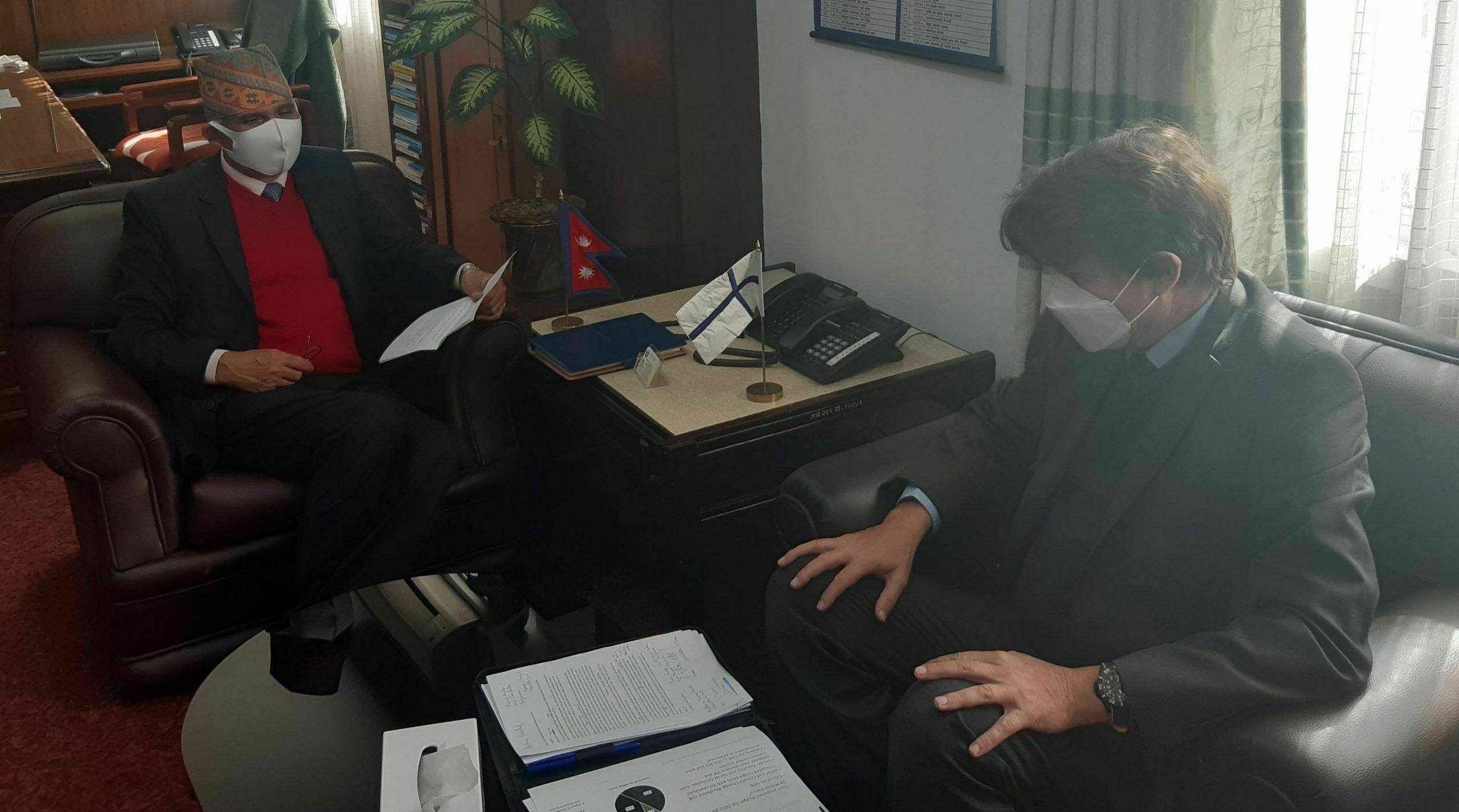 काठमाडौं । अर्थमन्त्री विष्णुप्रसाद पौडेल र नेपालका लागि फिनल्याण्डका राजदूत पेर्ट्टी एन्टिनेनबीच शिष्टाचार भेटघाट भएको छ ।