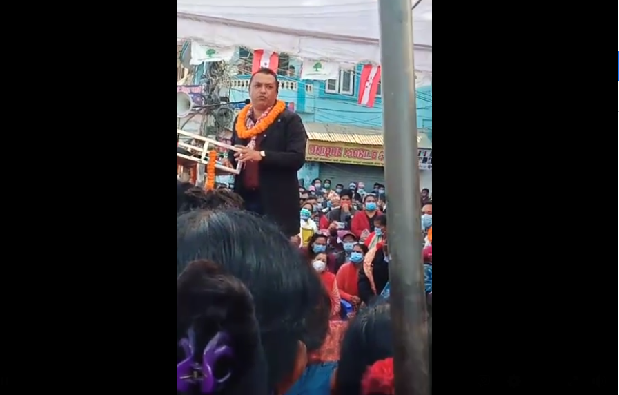कार्यक्रमलाई सम्बोधन गर्दै नेता थापाले बालुवाटारको जग्गा प्रकरणमा मुछिएको व्यक्ति अर्थमन्त्रीको कुर्सीमा विराजमान भएको भन्दै आक्रोश व्यक्त गरेका छन् ।