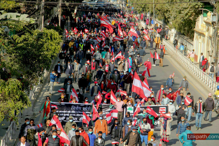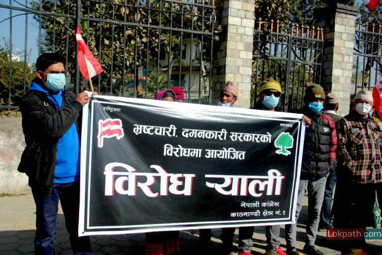 काठमाडौं । प्रमुख प्रतिपक्षी दल नेपाली कांग्रेसले आज (सोमवार) देशभर सरकार विरुद्ध विरोध प्रदर्शन गरेको छ ।