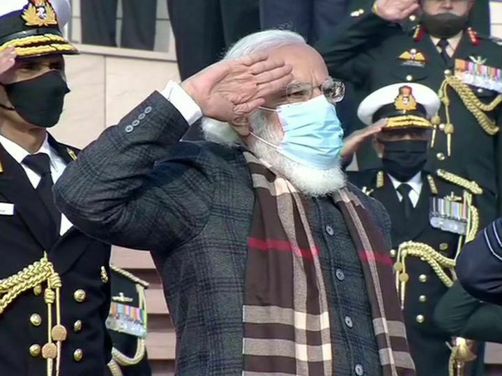 #WATCH Prime Minister Narendra Modi pays tribute to the fallen soldiers at National War Memorial on the 50th-anniversary of the 1971 India-Pakistan war#VijayDiwas2020 pic.twitter.com/v0sDbwVeQ6